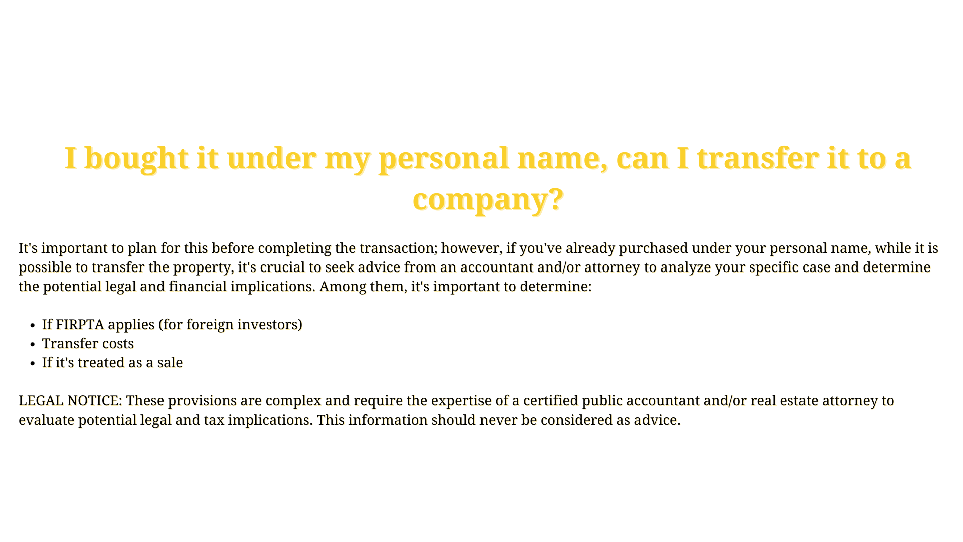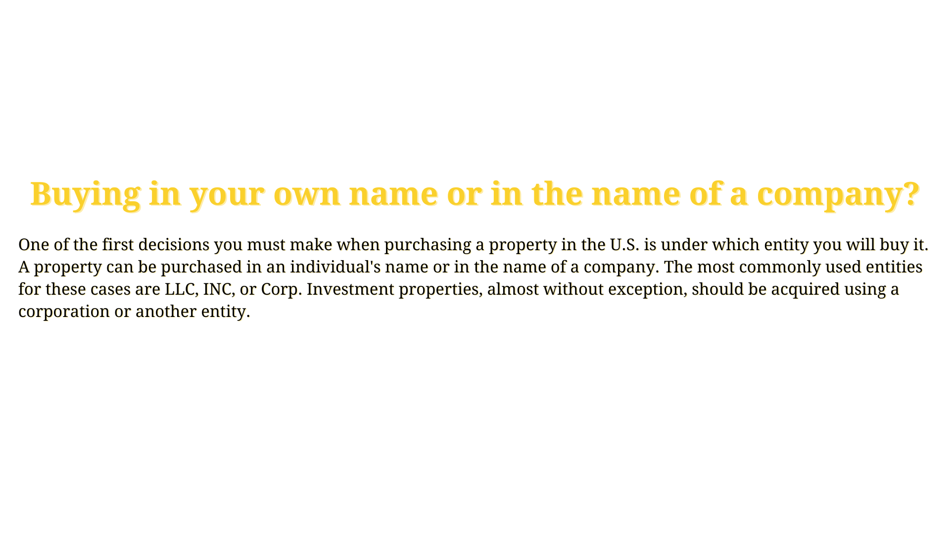 • It protects the owner from potential lawsuits related to the property. In other words, in the event of a lawsuit, it can only be directed against that property and not against other personal assets.